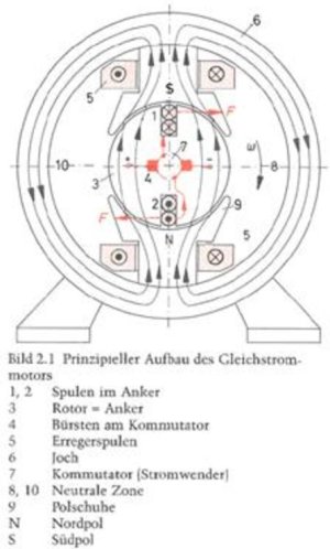 Prinzipieller Aufbau eines Gleichstrommotors: