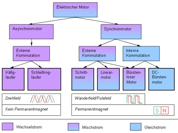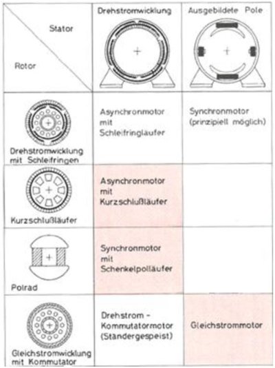Prinzipieller Aufbau der wichtigsten Elektromotoren: