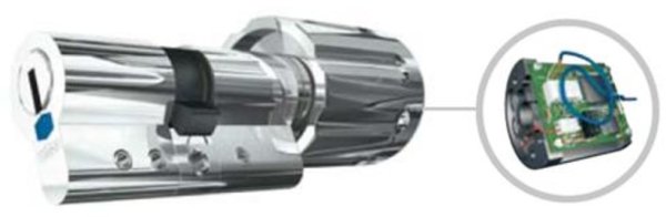 Ausgefeilte Identifikationsprinzipien finden ihre Anwendung zum Beispiel bei Sicherheits-Schlosssystemen. Der Schlüssel ist mit einem Chip ausgerüstet. Im Drehknauf ist ein weiterer Chip mit einer Stromversorgung integriert. Mit diesem Prinzip überprüft sowohl die gewöhnlich Schlüsselmechanik das Zutrittsrecht, als auch der Identifikationschip, der die Zutrittsrechte für den jeweiligen Anwender auch auf bestimmte Zeitfenster einschränken kann. Es besteht auch die Möglichkeit den ganzen Datenverkehr zu protokollieren.