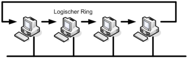 Mittels mehrerer Zweipunktverbindungen wird bei dieser Struktur ein physikalischer Ring aufgebaut.Dabei wird die zu übertragende Information von Teilnehmer zu Teilnehmer weitergeleitet. Auch hier muss mittels Buszugriffsverfahren sichergestellt sein, dass nur ein Teilnehmer zu einem bestimmten Zeitpunkt sendet.