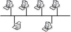 Bei der Bus-Struktur, auch Linienstruktur genannt, kommunizieren alle Teilnehmer über eine gemeinsame Leitung.