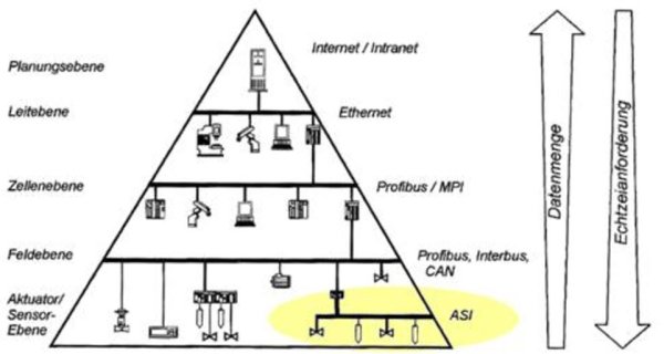 Das AS-Interface wurde speziell für die Sensor-/Aktorebene entwickelt und eignet sich deshalb sehr gut für die Kommunikation einzelner Sensoren-/Aktoren.