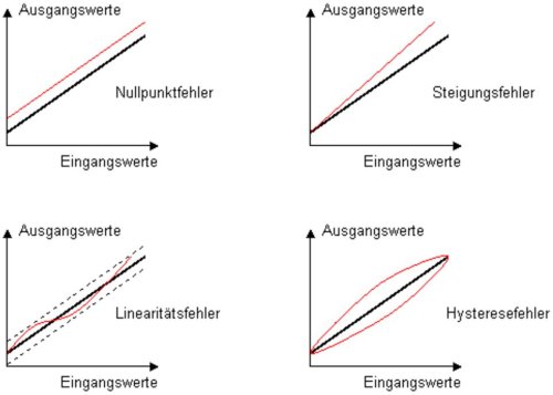 Statische Fehler von Sensoren: Die statische Messgenauigkeit eines Sensors ergibt sich aus der Summe aller Einzelfehler. Die Einzelfehler bestehen aus den folgenden vier wesentlichen Fehlerarten: