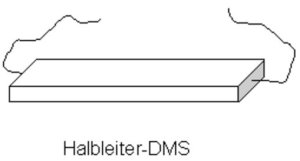 Für Dehnungsmessung (DMS): Für die Dehnungsmessung wird in der Praxis meistens der sogenannte Dehnungsmessstreifen (kurz DMS) angewendet. Dieser Messstreifen wird an der verformungsaktiven Zone eines Körpers aufgeklebt. Bei diesem Sensortyp wird der piezoresistive Effekt (physikalischer Piezo-Effekt der Widerstandsänderung R) genutzt.