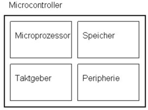 Microcontroller sind Einheiten, mit denen sowohl binäre als auch analoge Signale bearbeitet werden können. Die Befehle für den Prozessor werden vom Anwender üblicherweise in C-Code oder Assembler-Code programmiert. Der Microcontroller besteht im Wesentlichen aus einem Mikroprozessor, einem Speicher, einem Taktgeber und einer Peripherieeinheit.
